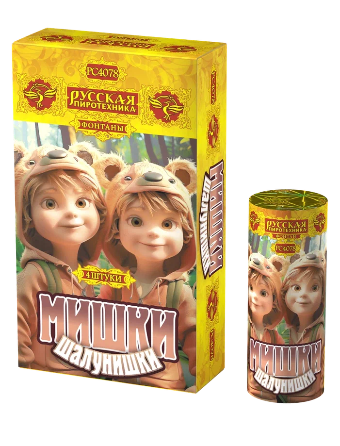 Пиротехнический фонтан Мишки-шалунишки Энгельс РС4078 купить 500 руб. высота форса 2 м. время работы 20 сек. Русская пиротехника ждём заказ магазин привезем вам на склад в Энгельсе | ehngels.torgsalut.ru