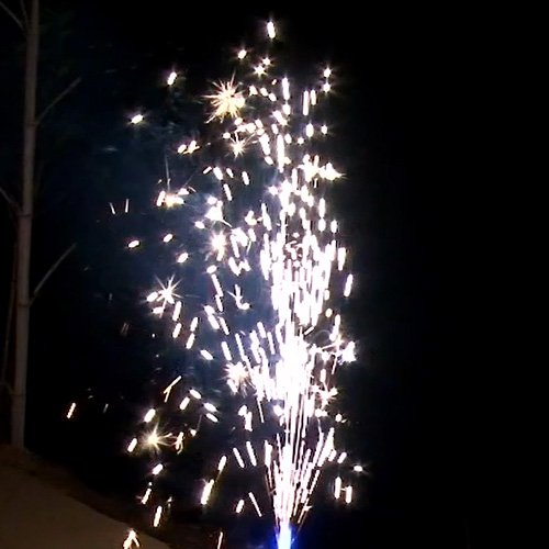 1. Мощный поток серебряных искр и красное мерцание.