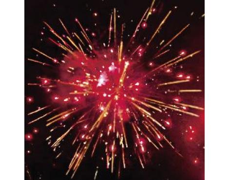 11-12. Выстреливает одновременно: Свистящие змейки. Красно-сине-желтая сфера (пион) и облако треска (трещащий дождь). (55-70 сек., до 40 м)